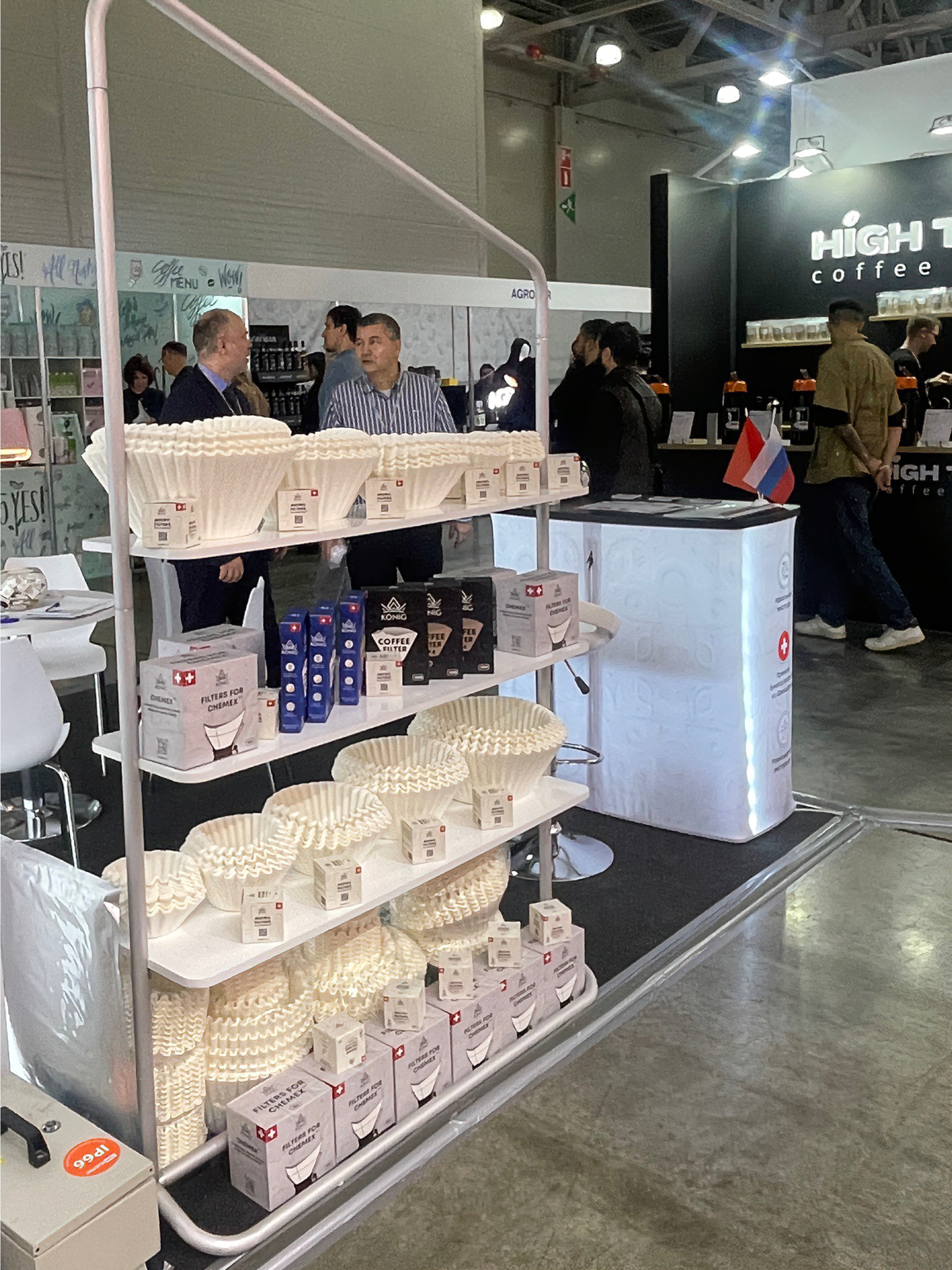 Мы представили продукцию собственного производства — бумажные фильтры для кофемашин и фритюрниц, предназначенные для профессионального и домашнего использования. Посетители стенда могли познакомиться с ассортиментом фильтров, узнать о преимуществах наших материалов и технологиях производства, а также обсудить индивидуальные решения для предприятий HoReCa.